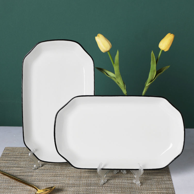 特別オファー 魚皿 家庭用陶器 シンプル クリアランス 長方形 魚蒸し皿 シングルコンビネーション食器