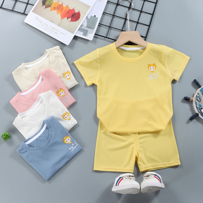 パジャマ子供夏さわやかアイスシルクジャカード子供スーツ速乾プルオーバーベビー半袖ショーツツーピースホットセット