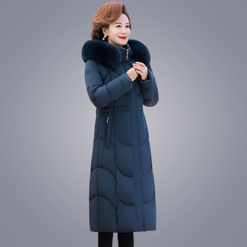 中高年女性の中丈膝丈中綿コート、新作冬厚手ダウン中綿コート、中年大きいサイズ、洋風ママ服