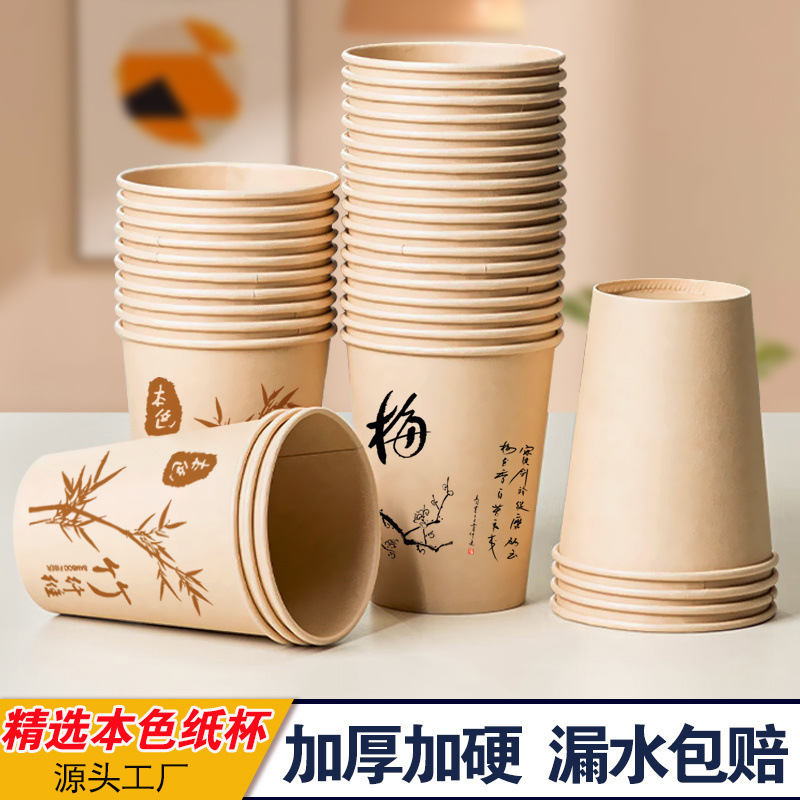 使い捨て紙コップ卸売フルボックスナチュラルカラーカップ厚みのあるウォーターカップホームオフィス商業印刷ロゴメーカー
