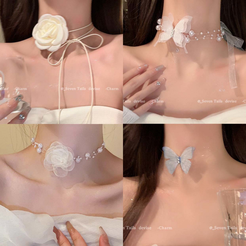 バタフライパールネックレスレディースライトラグジュアリーニッチハイエンド鎖骨チェーン2024新しいスタイルスーパーフェアリー気質多用途ネック
