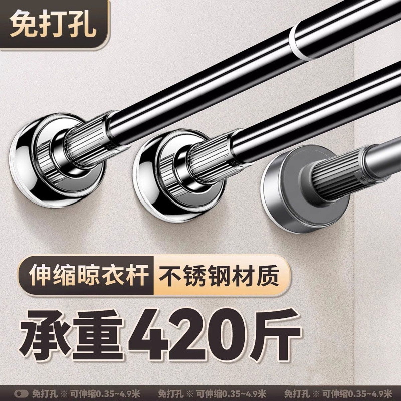 穴あけ不要の伸縮ロッド、釘不要の衣類乾燥、厚みのあるステンレス製カーテン吊りロッド、シャワーカーテンロッド、ドアカーテン、ワードローブ、滑り止め。