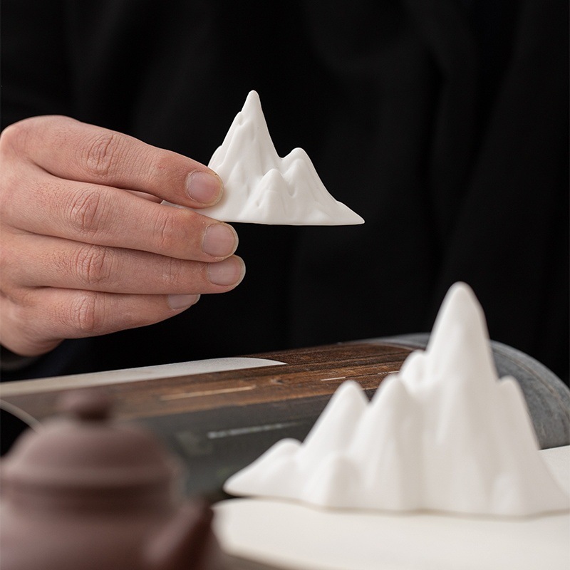 白磁の岩の小さな装飾品、ティーペット、クリエイティブなマイクロランドスケープ、セラミックリビングルームの入り口、中国風の装飾品