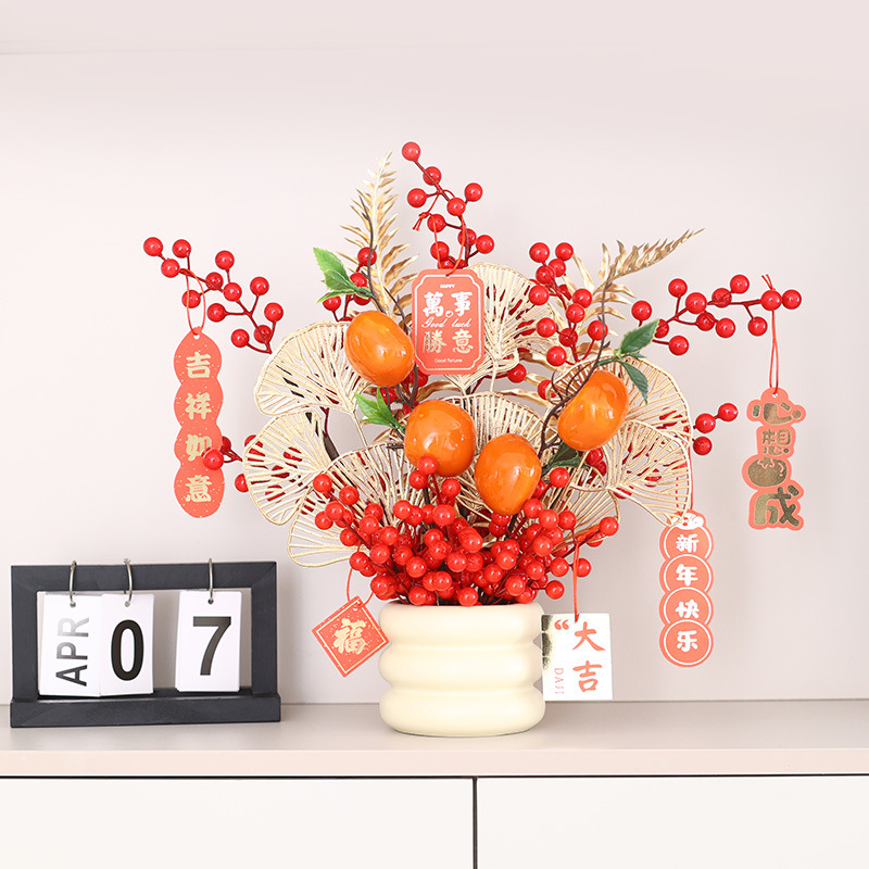 フォーチュンフルーツ新年の花 DIY デスクトップ玄関新年の装飾品造花新築祝い結婚式造花