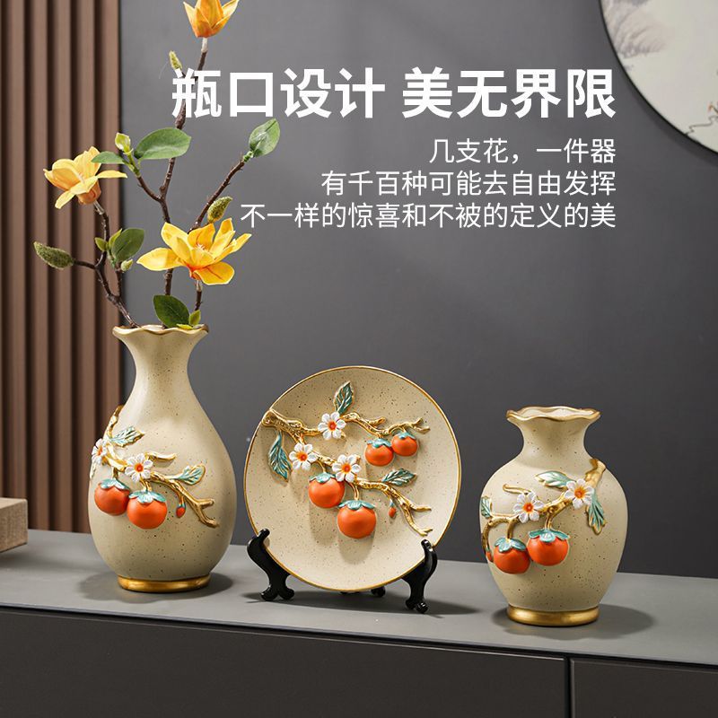 新しい中国風の本物の花を育てることができるセラミック花瓶 3 点セット、すべてがうまくいく、リビングルームの玄関テレビキャビネットとワインキャビネットの装飾品