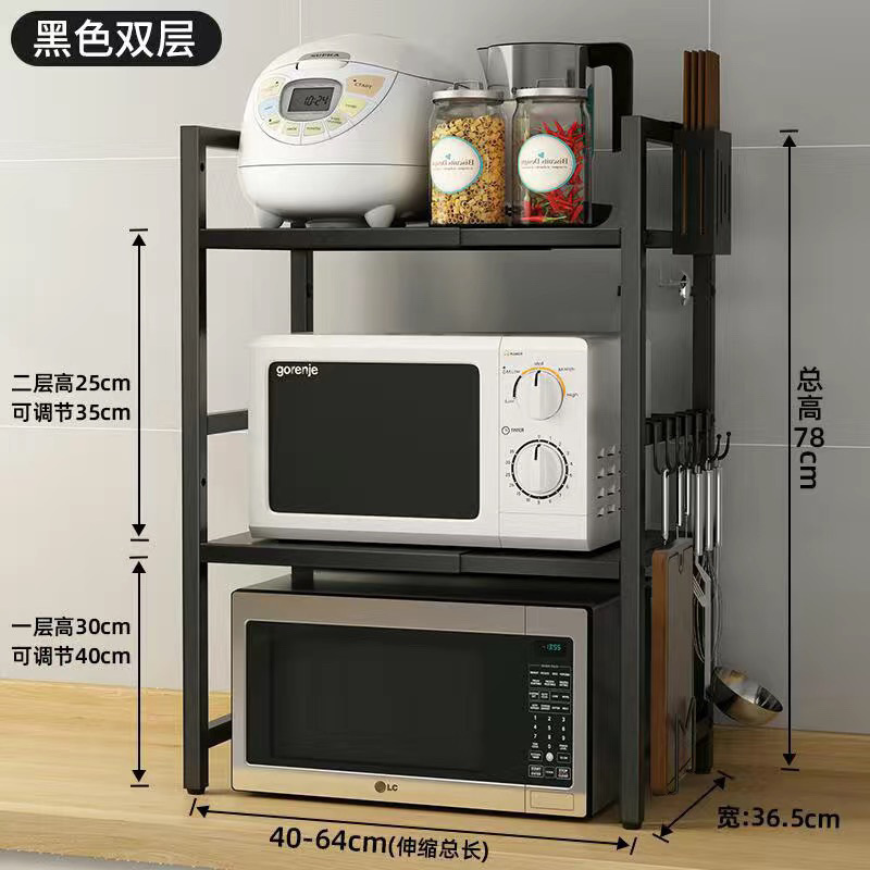 キッチン厚みのある格納式収納ラック電子レンジラック炊飯器ラックオーブン家庭用二層炭素鋼収納