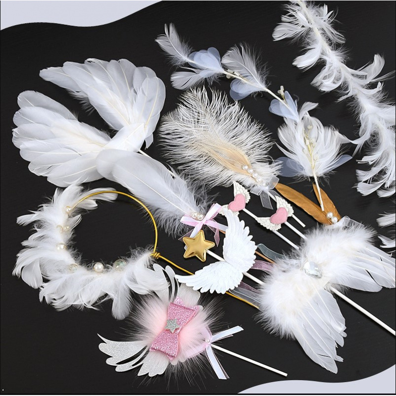 誕生日ケーキインサートフェザーホワイトハート型装飾ワイヤー多用途ダチョウの羽ライトクラウンオーナメントアクセサリー