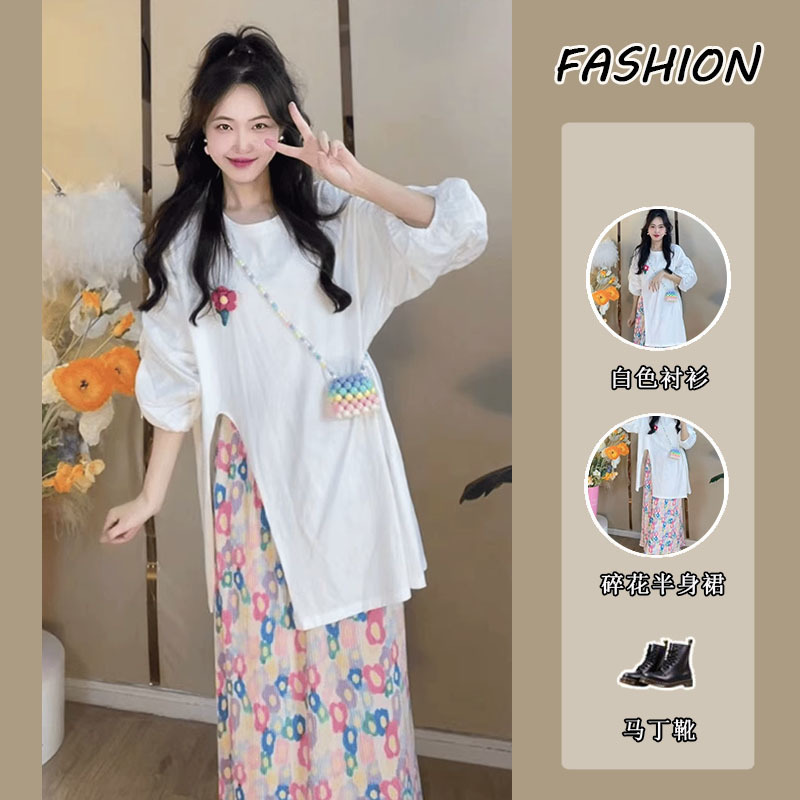 女性のためのリゾートスタイルスーツ 2024 夏年齢軽減休暇スリット白日焼け止めシャツトップ花柄スカートトレンディ