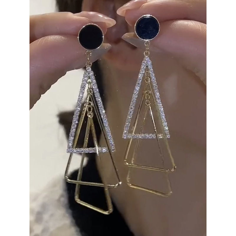 ファッショナブルな立体幾何学イヤリング 2022 新しいトレンディなダイヤモンド多層三角形イヤリングハイエンド多用途イヤリング
