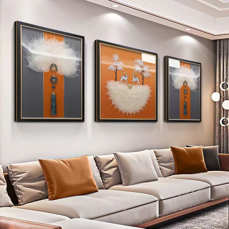 新しいリビングルーム装飾絵画菩提葉トリプティク手作り物理吊り絵画中国風 2023 モダンなミニマリスト壁画