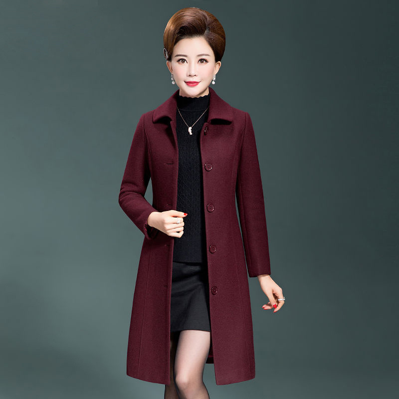 秋冬中高年女性の大きいサイズのウールコートミドル丈ウインドブレーカー高級ウールコート5060おばあちゃんコート