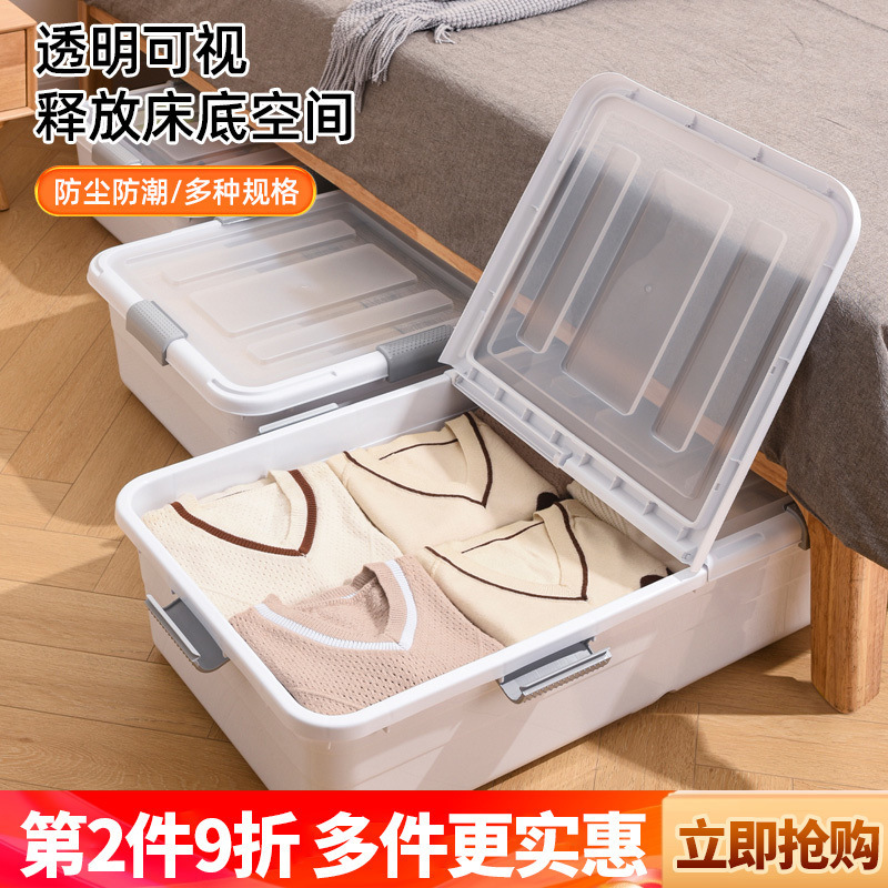 ベッド下収納ボックスフラット大型家庭用プラスチックベッド下収納ボックス学生寮整理ホイール付きドロップシッピング