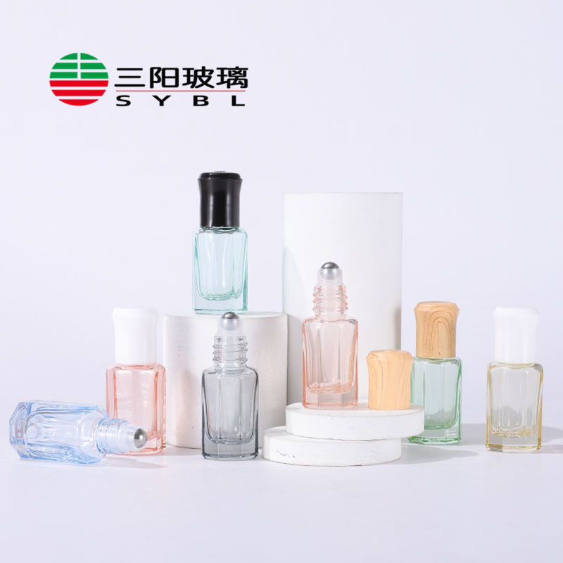 カラーボール瓶6ml八角形ビーズ瓶香水分注瓶ガラス精油瓶