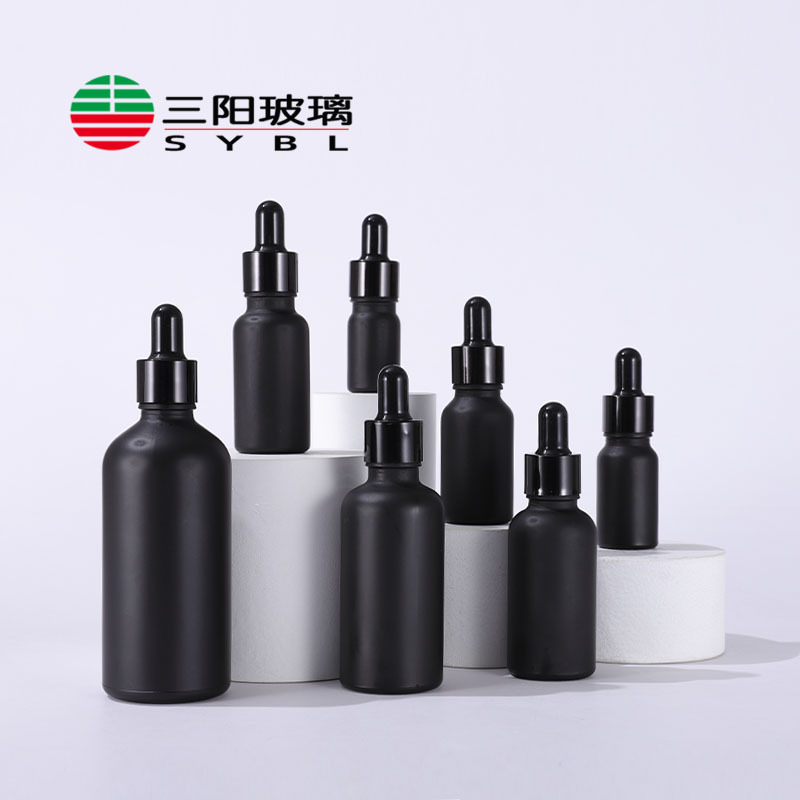 原色黒フロストエッセンシャルオイルの瓶5-100mlマットブラック遮光スポイトの瓶の精華液の分注の瓶の原液のガラス瓶