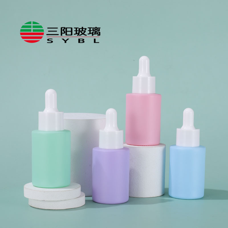 マカロンスポイトボトル30mlつや消しフラットショルダーエッセンシャルオイルボトルカラーストレートショルダーエッセンス原液ボトルガラス瓶