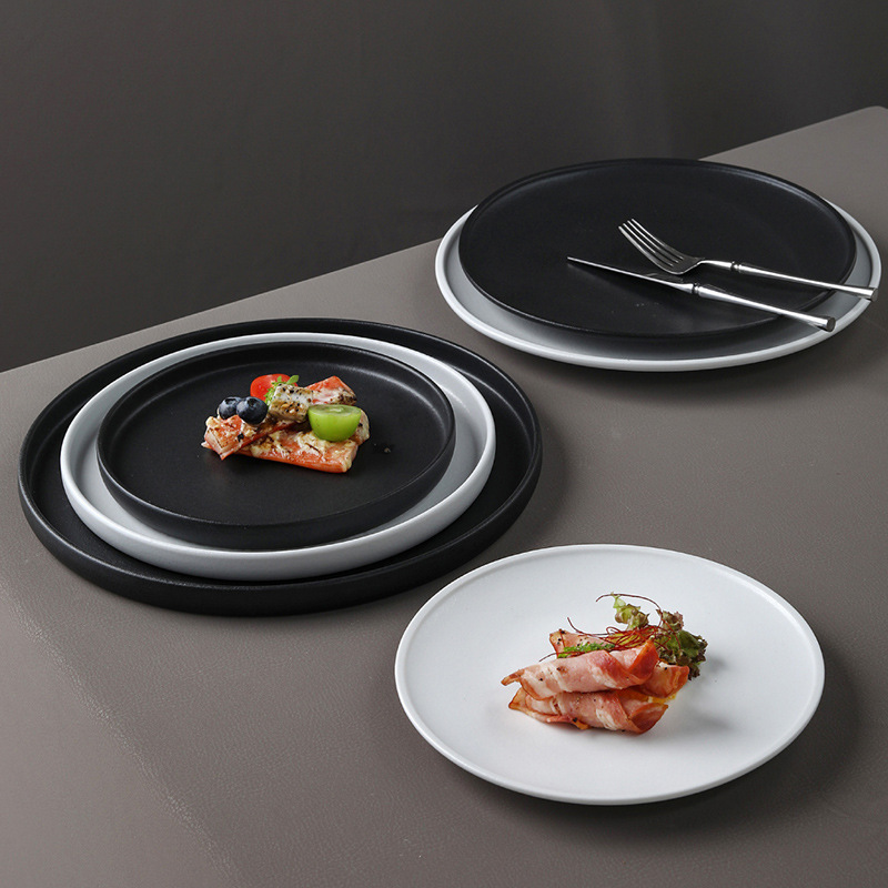 北欧洋食皿陶磁器釉薬下彩円形高級感料理皿家庭用平皿レストランホテルステーキ皿卸売り