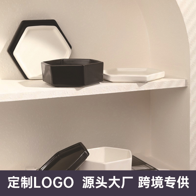 カスタム食器陶磁器六角浅皿深杯ホテル創意お菓子皿特色分子冷味盛り合わせデザート皿