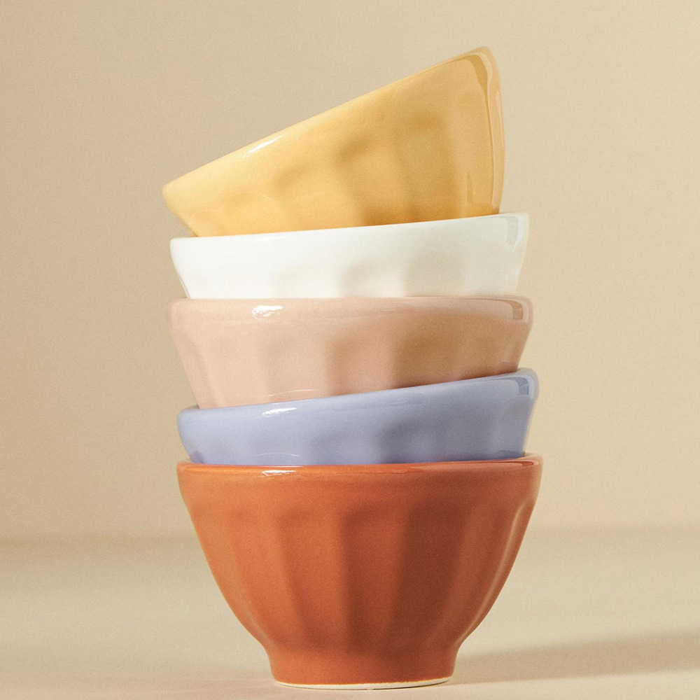 純色家庭用高級高颜値釉薬下彩陶磁器食事米茶碗スープ碗ins風面碗マカロン色碗