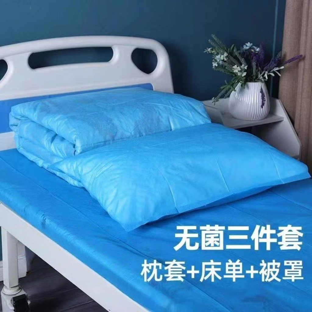 使い捨て医療用不織布布団カバーシーツ枕カバー3点セットホワイトブルー