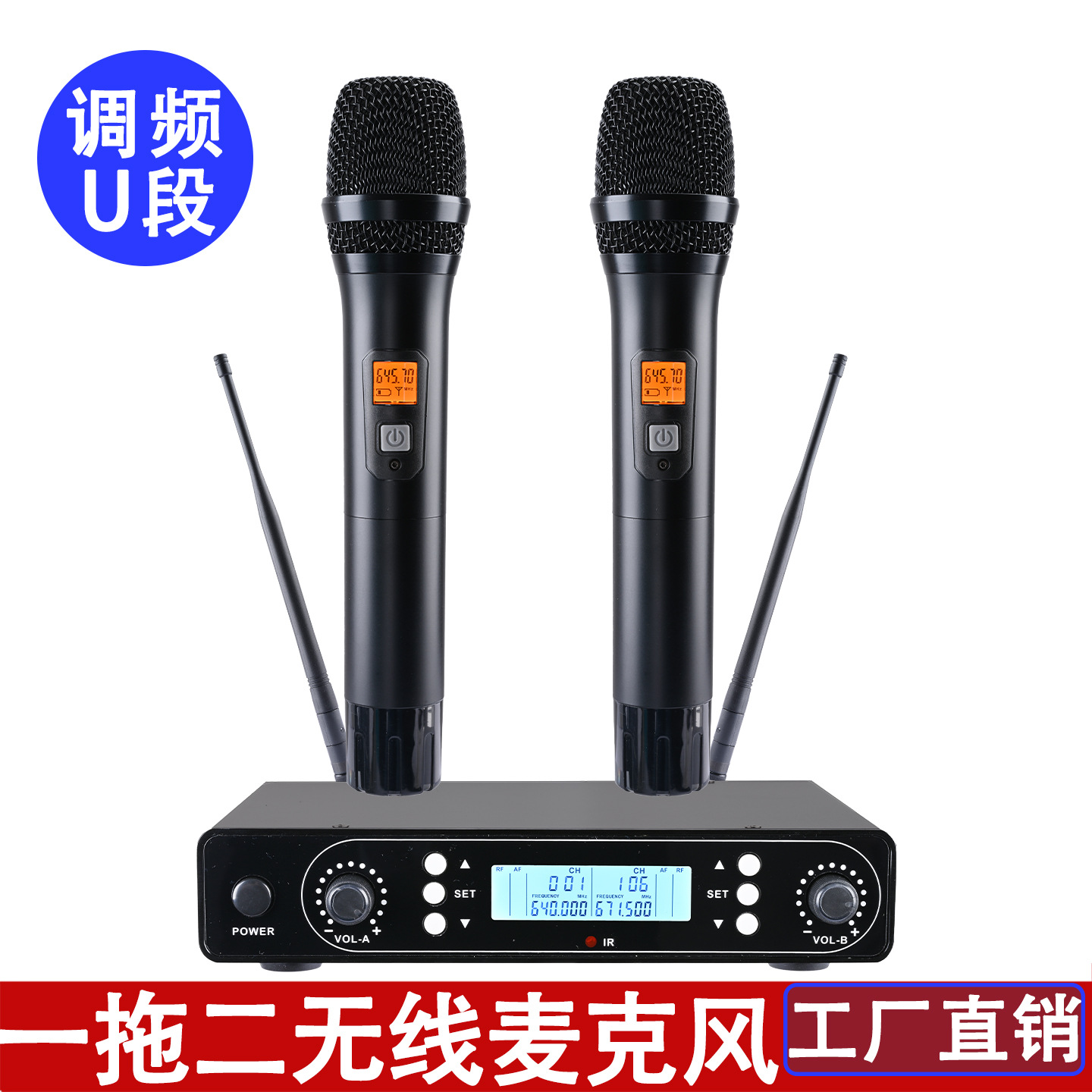 無線マイクは2つの専門のu段fmマイクktv専用家庭で歌を歌います。