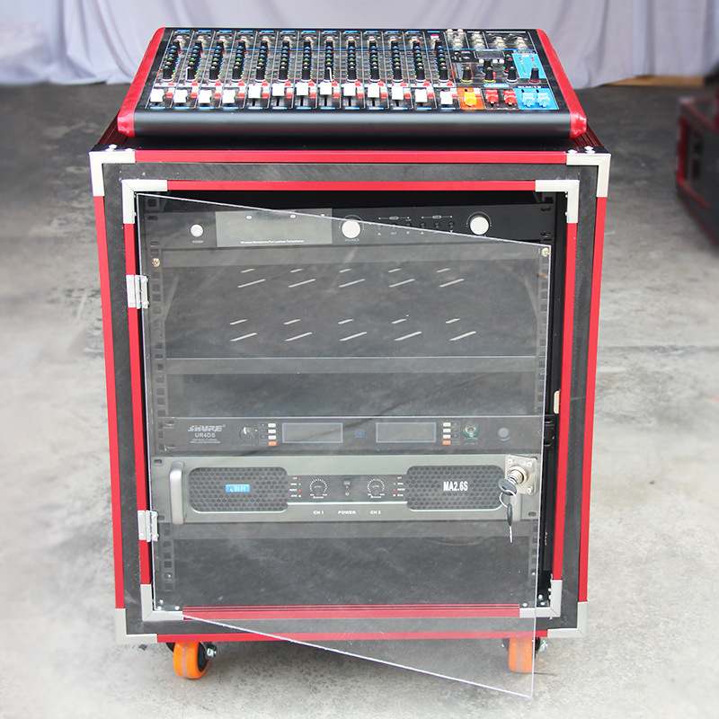 12u二重防震航空箱キャビネット16u透明ドアアンプ調音台8u4u舞台演出設備棚