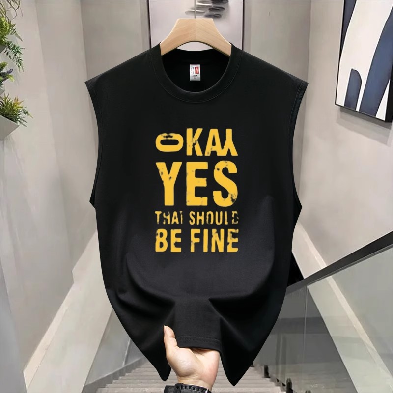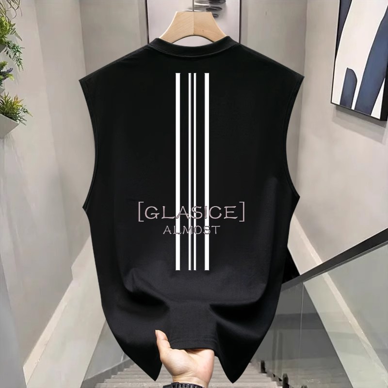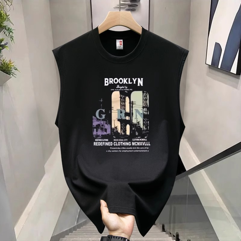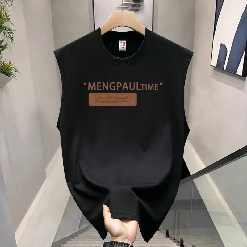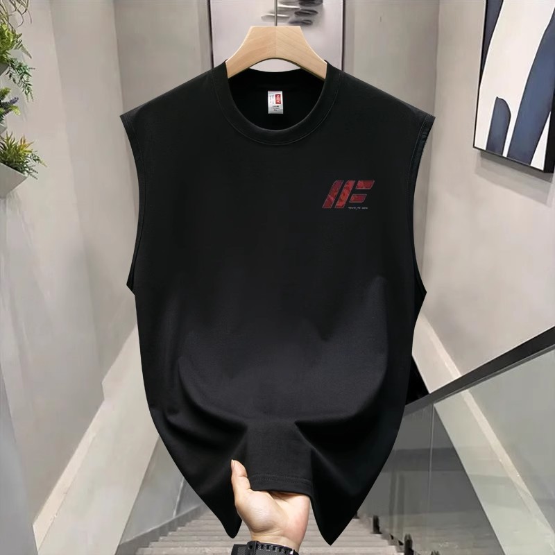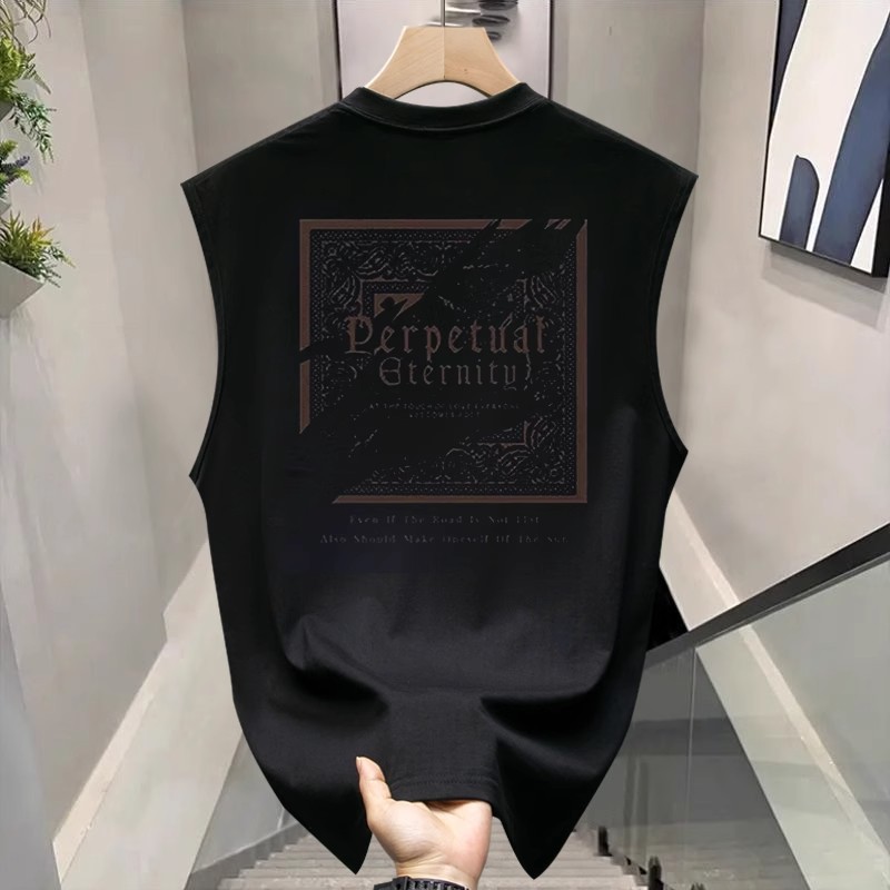 ピュアコットン 2025 サマーベストメンズトレンディブランドルーズラウンドネック Tシャツ香港スタイルスポーツノースリーブベストフィットネストップ