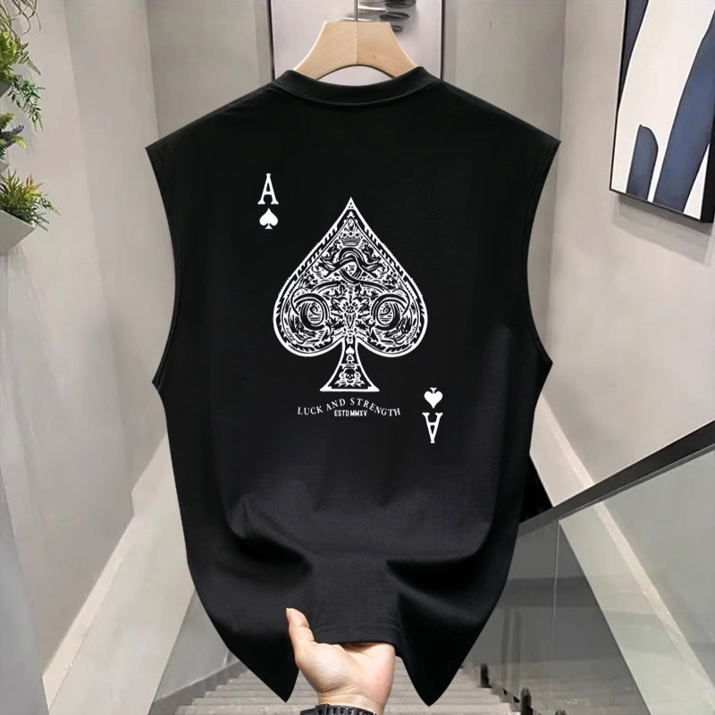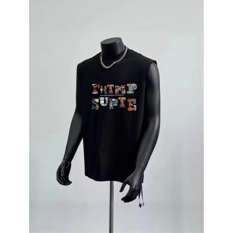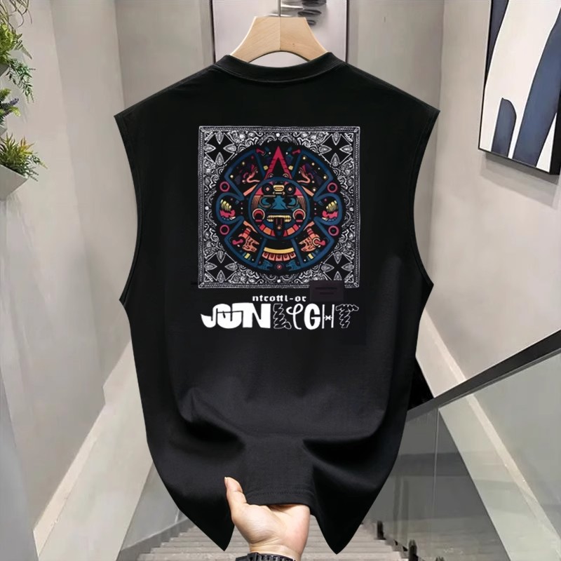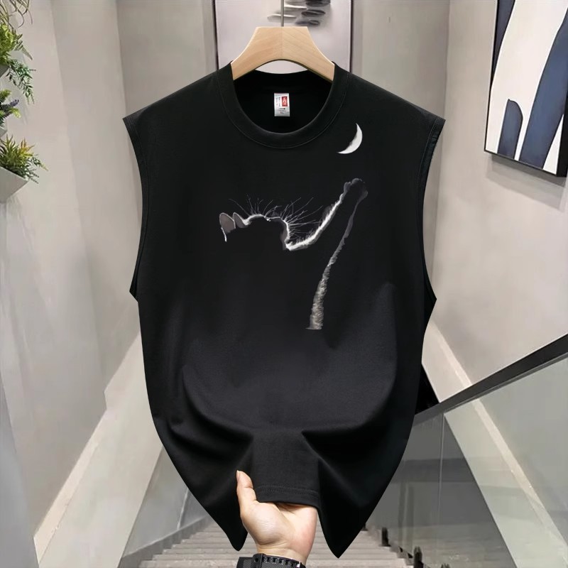 ベストメンズ夏 2025 新しいトレンディなブランドルーズコットンプリントノースリーブ Tシャツメンズカジュアルスポーツベスト