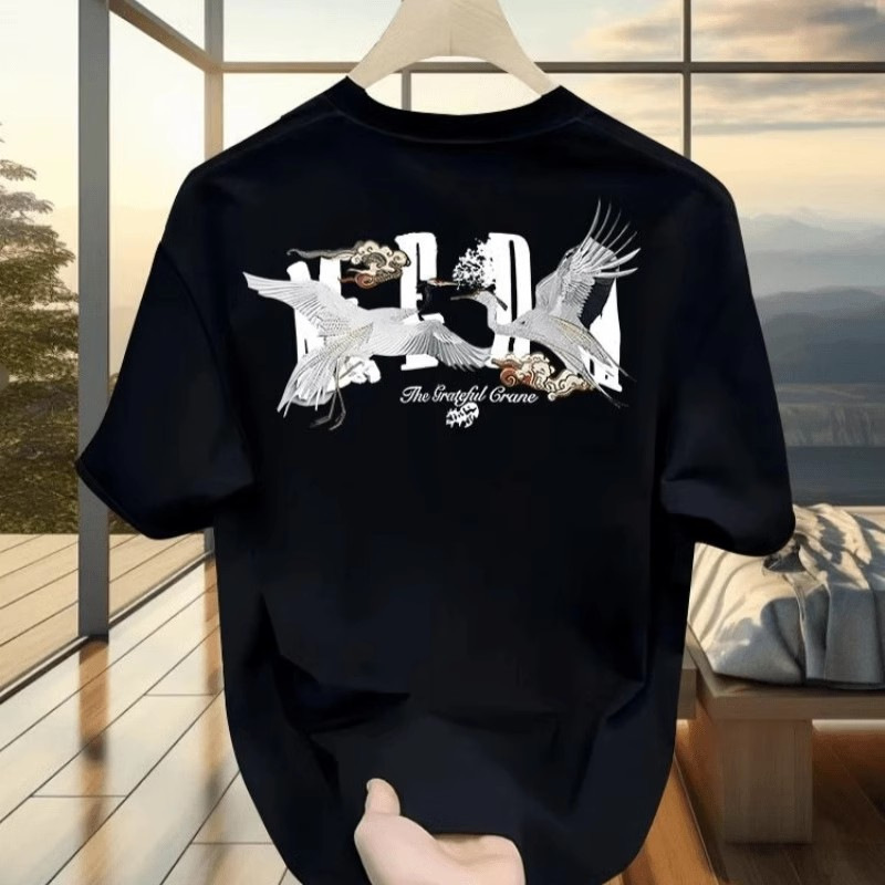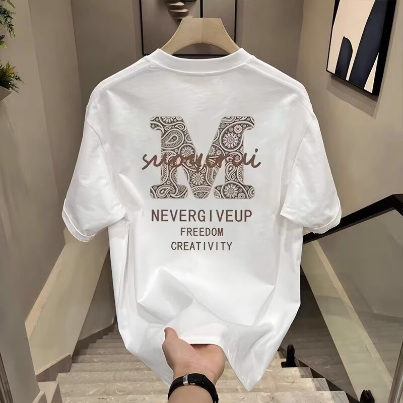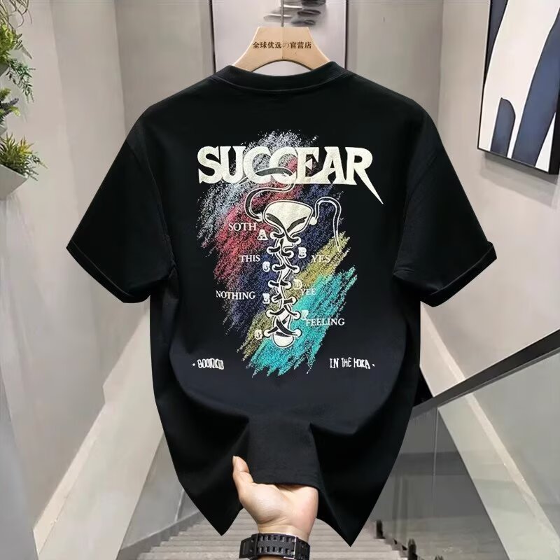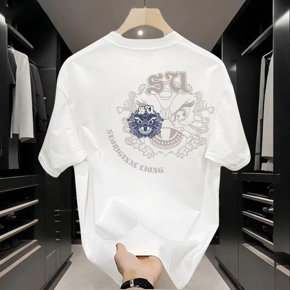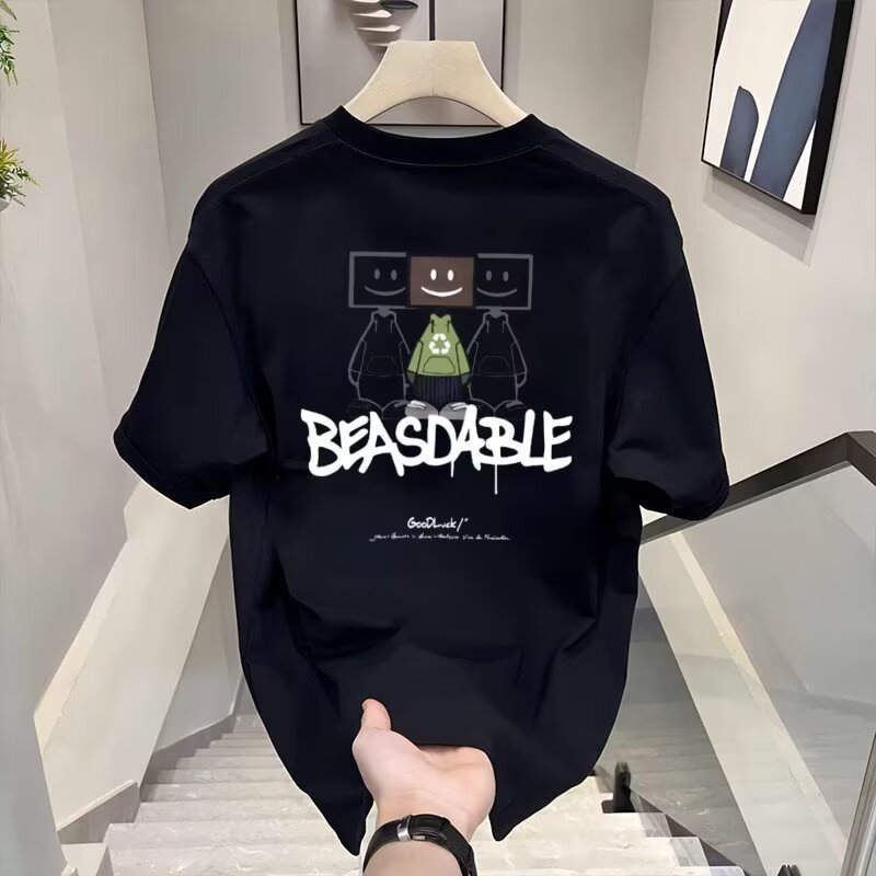 ヘビーウェイトコットン半袖Tシャツメンズ夏の新しいトレンディなブランド漫画プリントインルーズ通気性ファッショントレンドトップ
