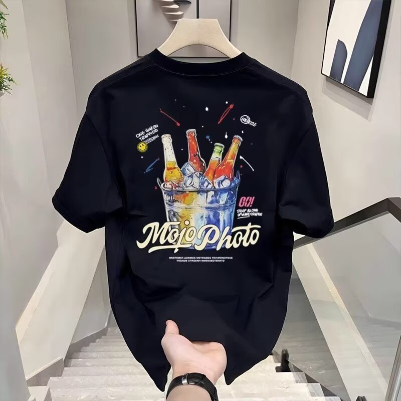【高品質】メンズ半袖Tシャツ アメカジ 夏 ラウンドネック プリント ボトムス 通気性 Tシャツ 万能トップス