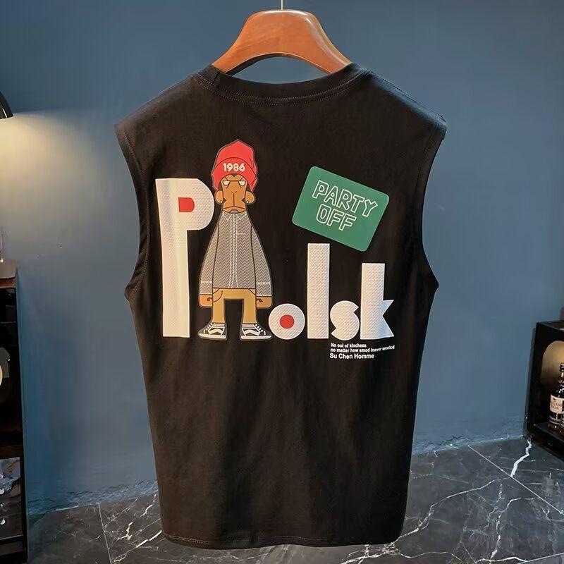 ベストメンズ夏アウタースポーツノースリーブTシャツ新しい純綿アメリカンルーズトレンディブランドハンサムストリートベスト