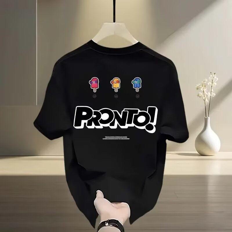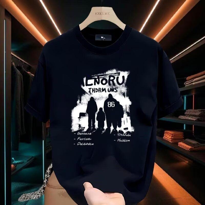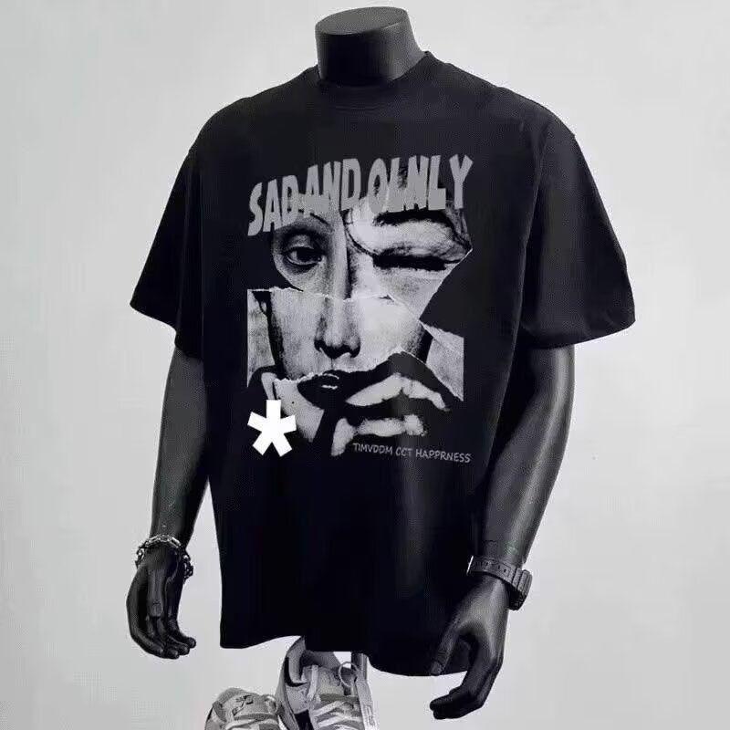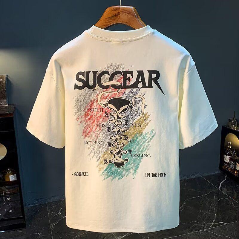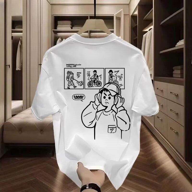 ヘビーウェイトコットン半袖Tシャツメンズ夏の新しいトレンディなブランド漫画プリントインルーズ通気性ファッショントレンドトップ