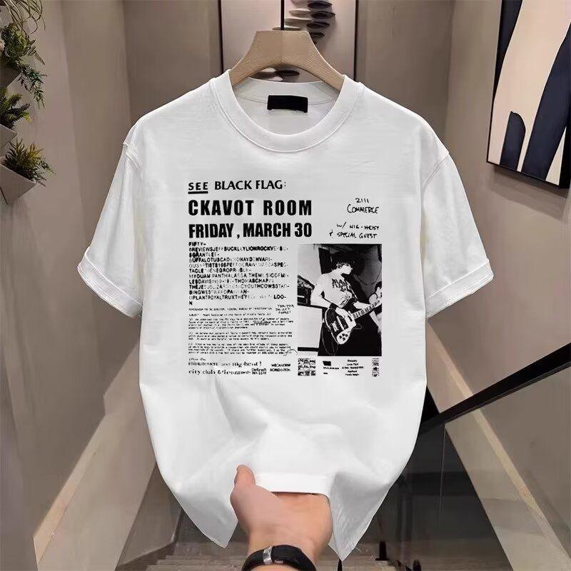 アメリカンハイストリートクリーンフィット半袖Tシャツ男性と女性のための2025年夏新しいバンドプリントラウンドネック半袖Tシャツ