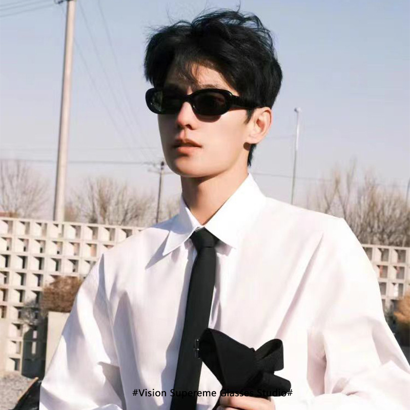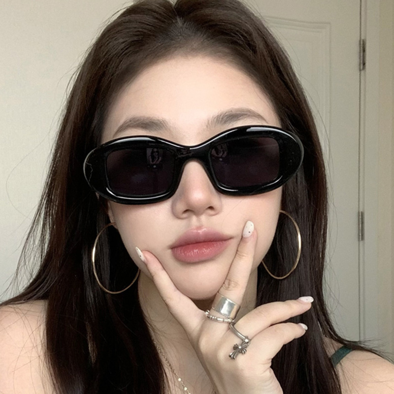新品insドーパミンサングラスレディース高级感紫外线防止黒フレームサンセットサングラス素顔サングラス