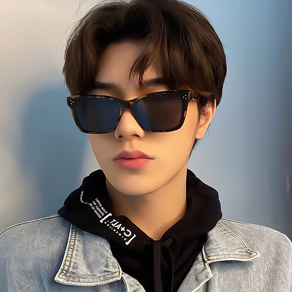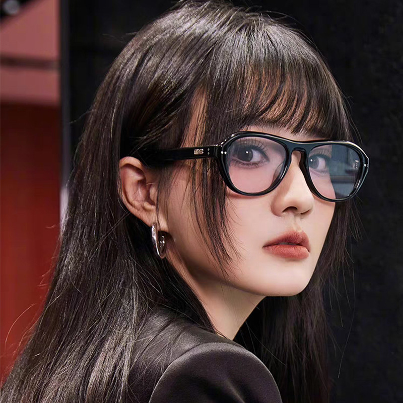 新型gm金智尼jennie同型黒枠眼鏡大枠男小顔痩せ防止ブルーレイすっぴん眼鏡女