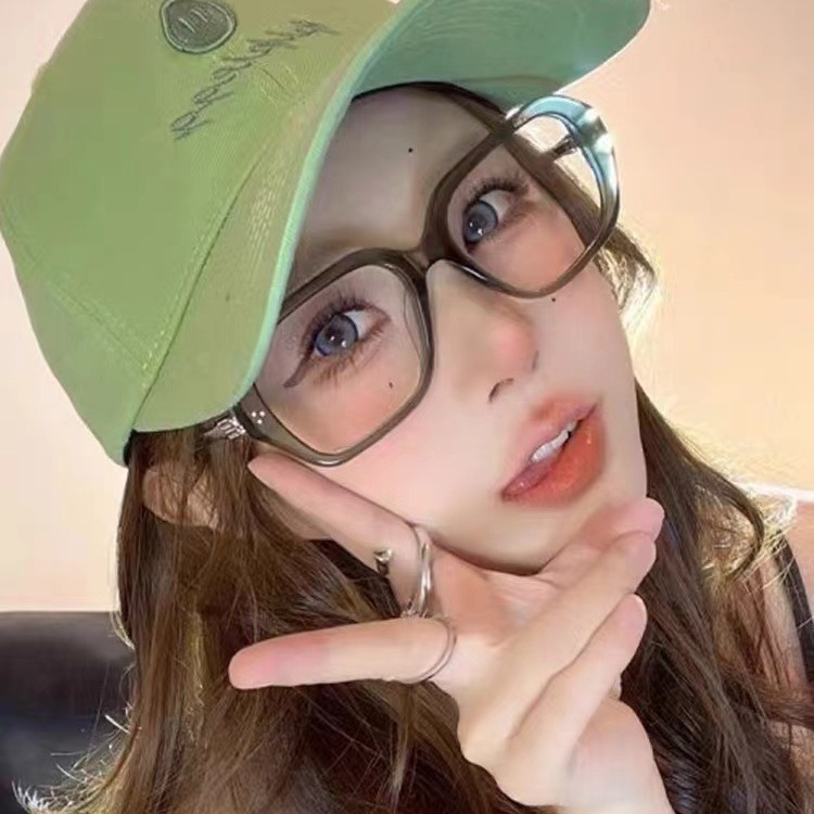 黒枠のメガネの女性の百合の韓国版の潮は近視のすっぴんの神器の大きい顔を配合することができます。