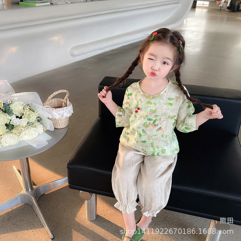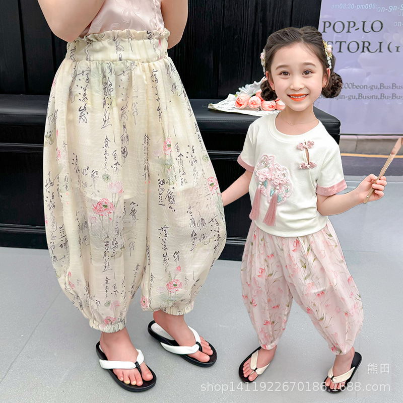 女の子中国風夏防蚊ズボン子供新中国式仙仙ズボン漢服唐装国潮古着ズボン