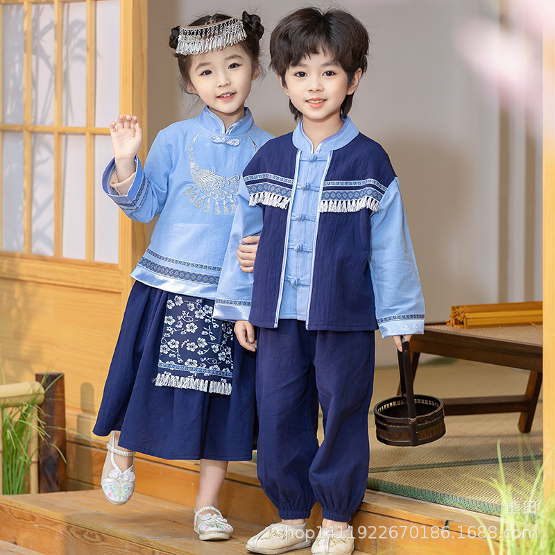 子供時代の幼稚園国学公演服男児少数民族ダンスショー女児3月3日タイ族服