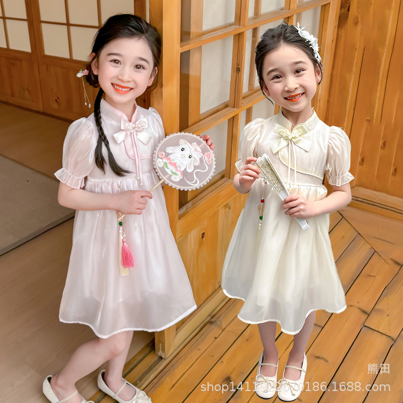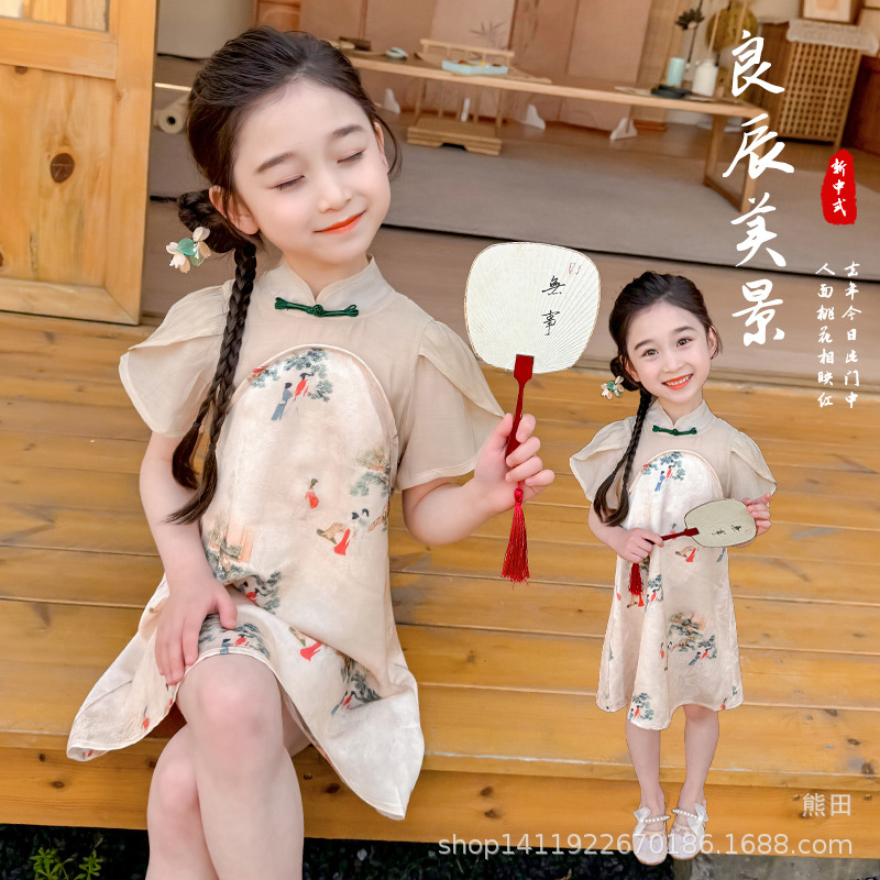 女の子の夏のチャイナドレス中国風唐装チャイナドレス子供の新しい改良漢服新中国風古風ワンピース