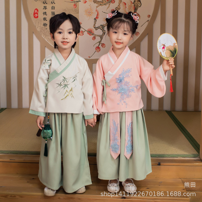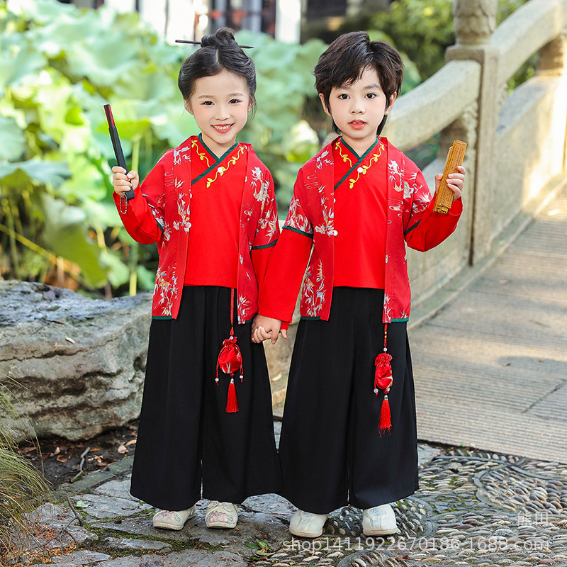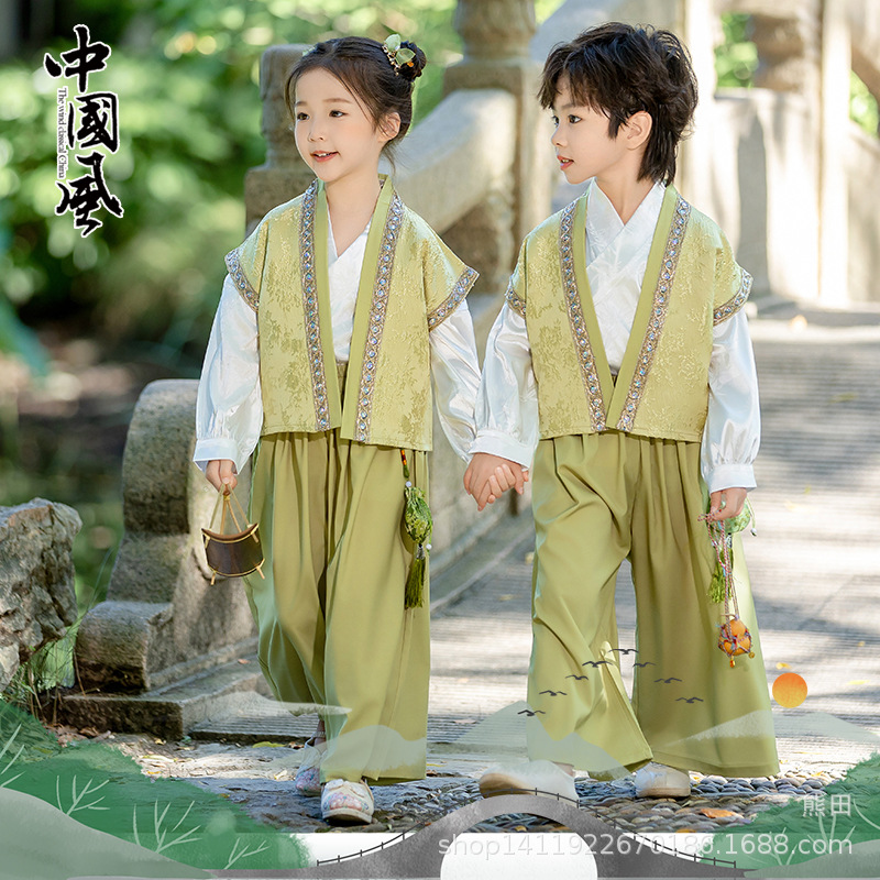 子供の時代劇の漢服の中国風の男の子の国学のスーツの女の子の新しい中国式の唐の服の復古の国の潮の演技の服