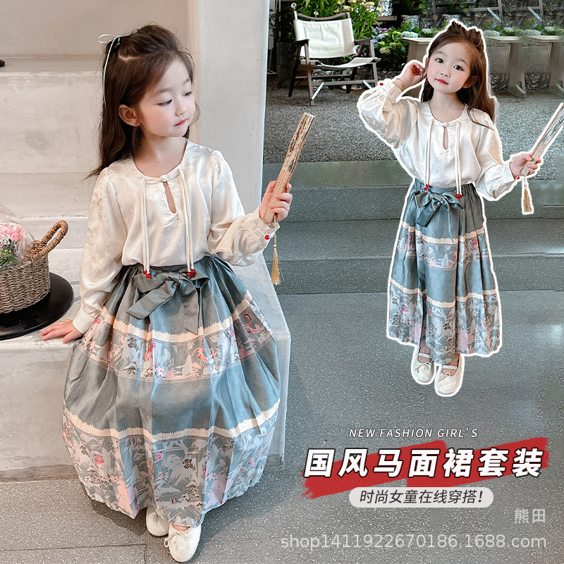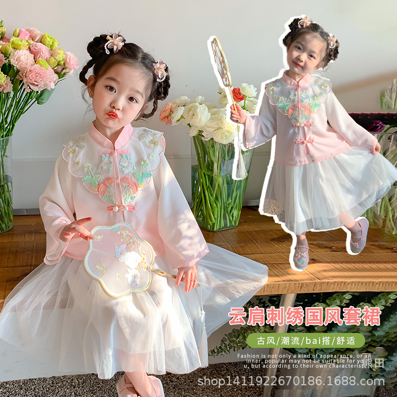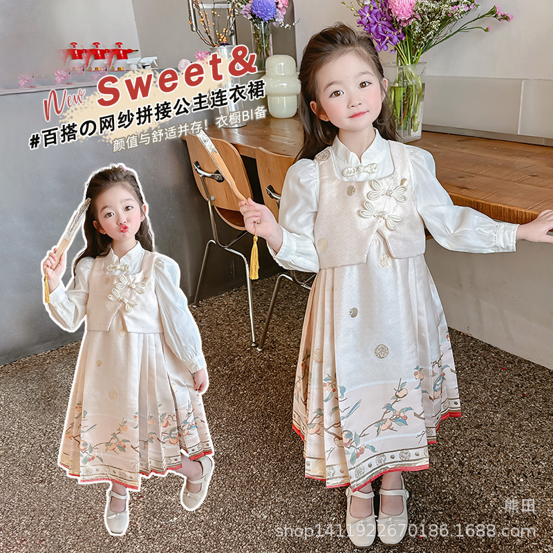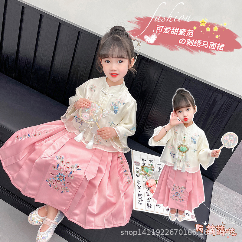 子供の漢服の馬のスカートの女の子のワンピースの春の服の新型の国風の新しい中国式の唐装の王女のスカートの時代のスーツ