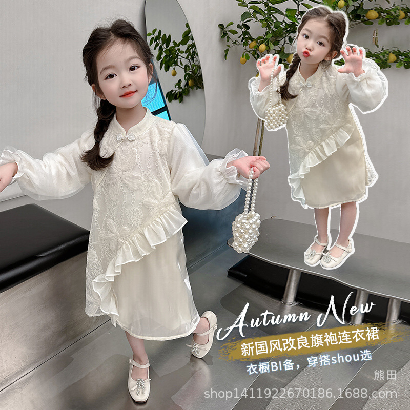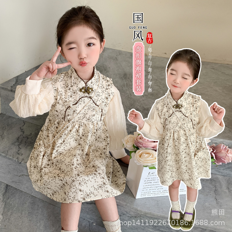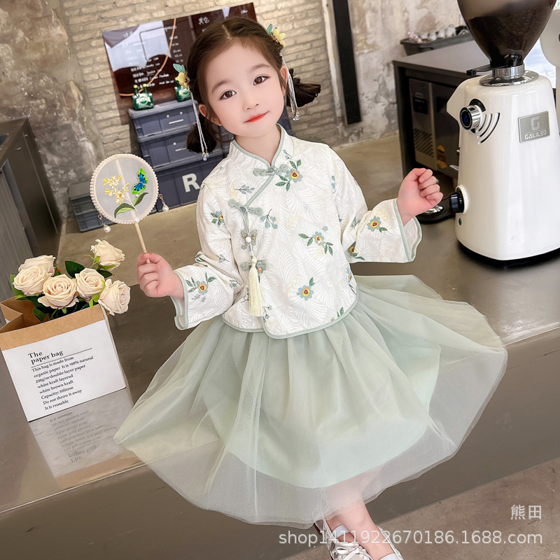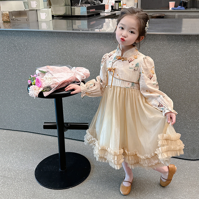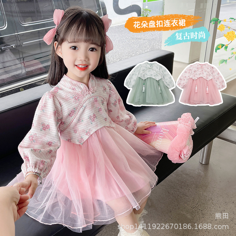 女の子2025春の新型漢服長袖新中国風プリンセススカート洋気子供時代唐装