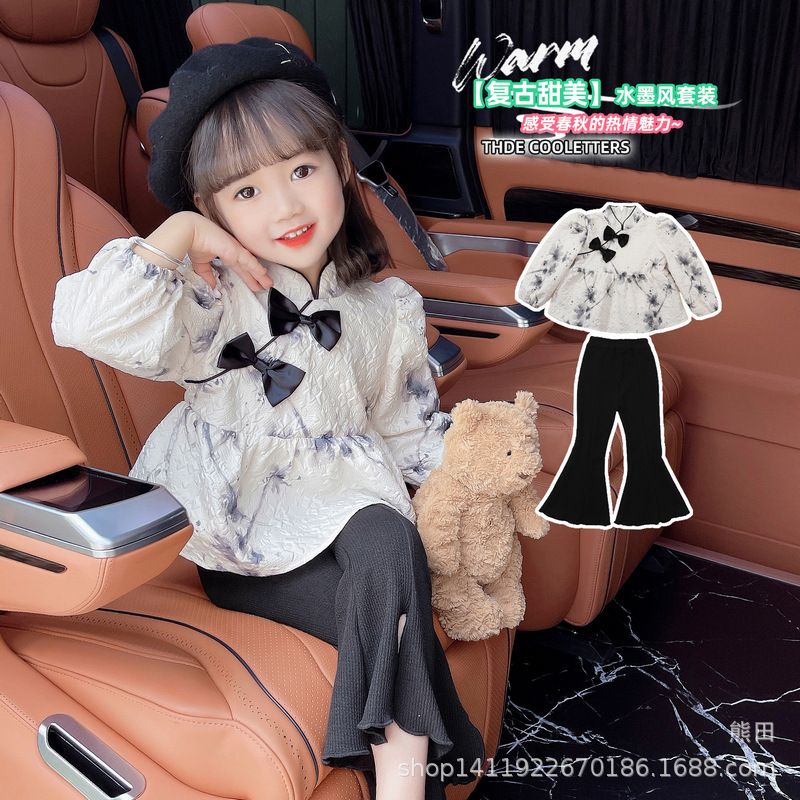 女の子中国風唐装新中国式漢服セット2025新型子供古風水墨画女宝2点セット