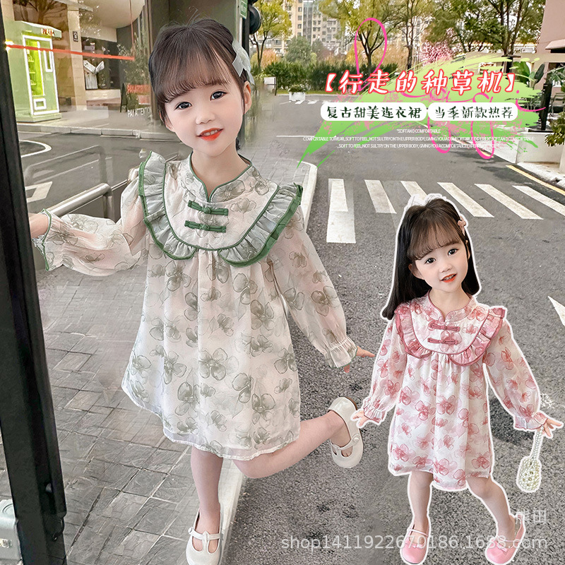 女の子の中国風のガーゼのスカートの春のタイプの2025新型の洋気の子供の女の子の赤ちゃんの新しい中国風の古風の長袖のワンピース