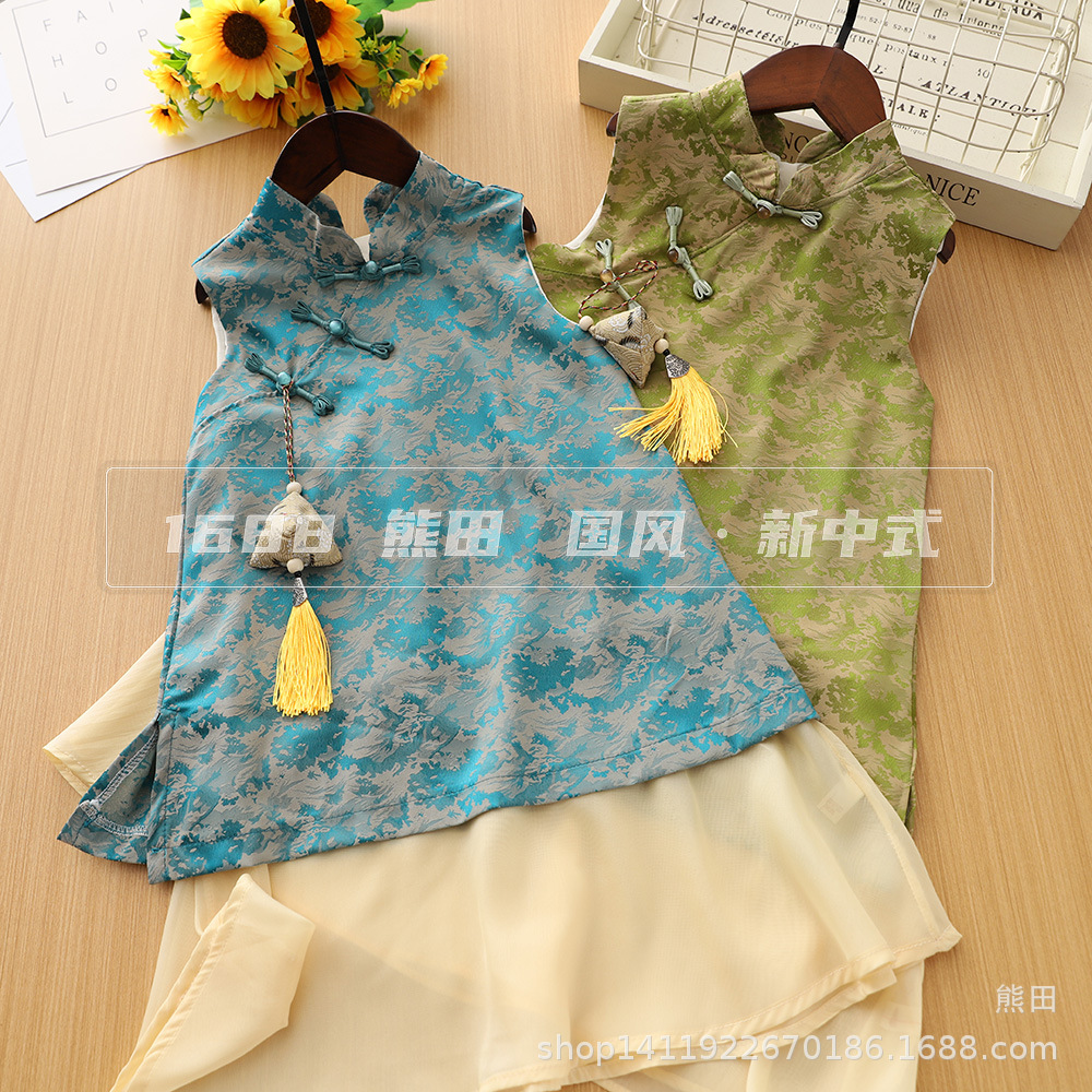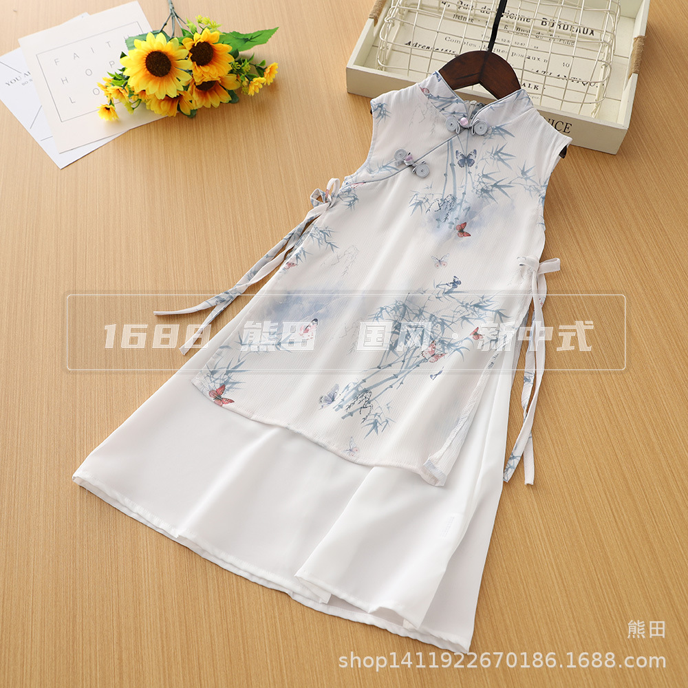 女の子の古代スタイルのチャイナドレス子供の夏の新しい中国風唐装ノースリーブチャイナドレス中大子供用改良されたチャイナドレス