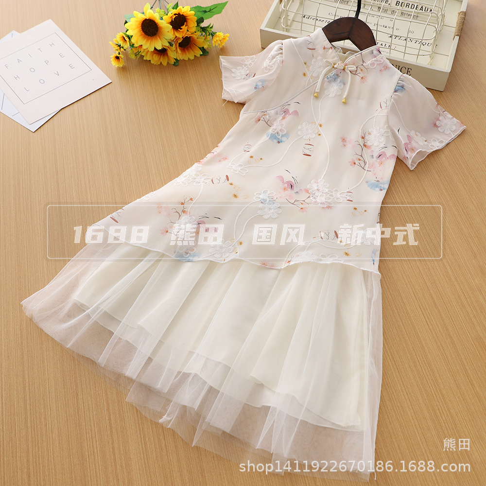女の子のチャイナドレス子供の新しい中国風の花柄スカート中型と大型の子供の夏服新しい中国風のプリンセスチャイナドレス