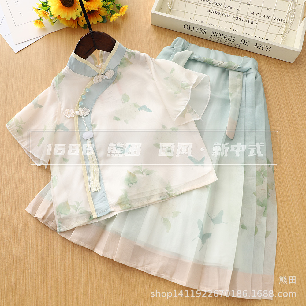 女の子韓服夏 2025 新しい子供の中国風ドレス新しい中国風スーツスカート子供のツーピース夏セット