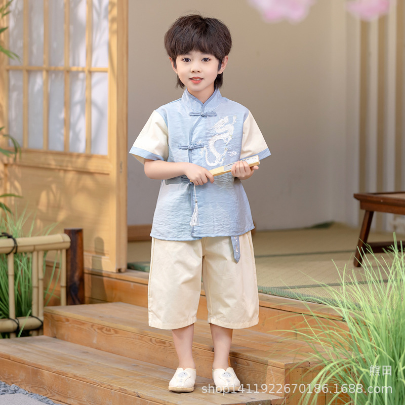 漢服男の子と女の子唐装子供の中国風スーツ夏半袖新中国風ベビー古代衣装パフォーマンス服