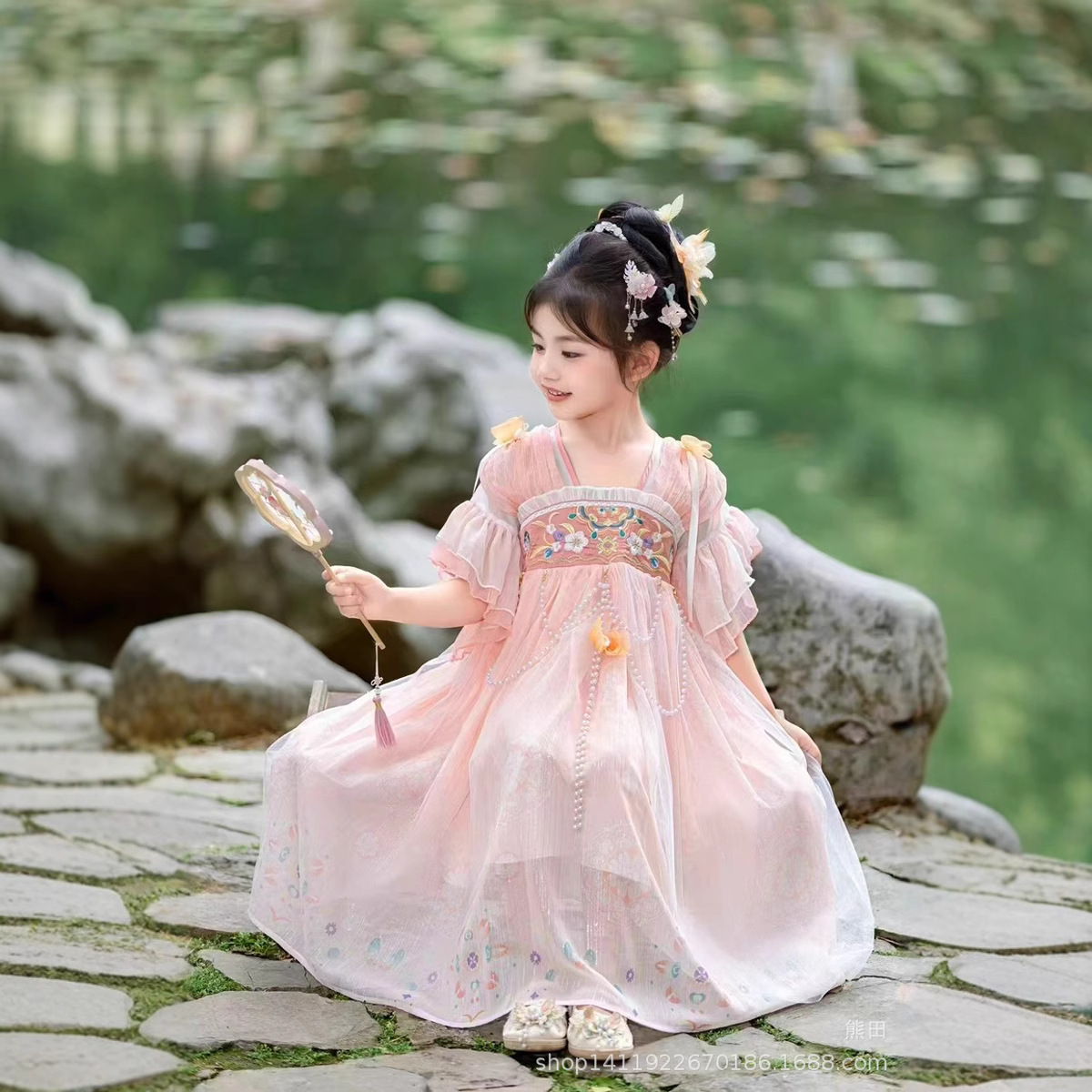 子供の漢服のワンピース2025夏の中国風の女の子は超仙の女性の唐の服を改良します。
