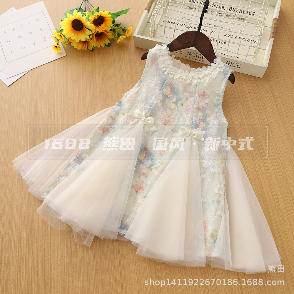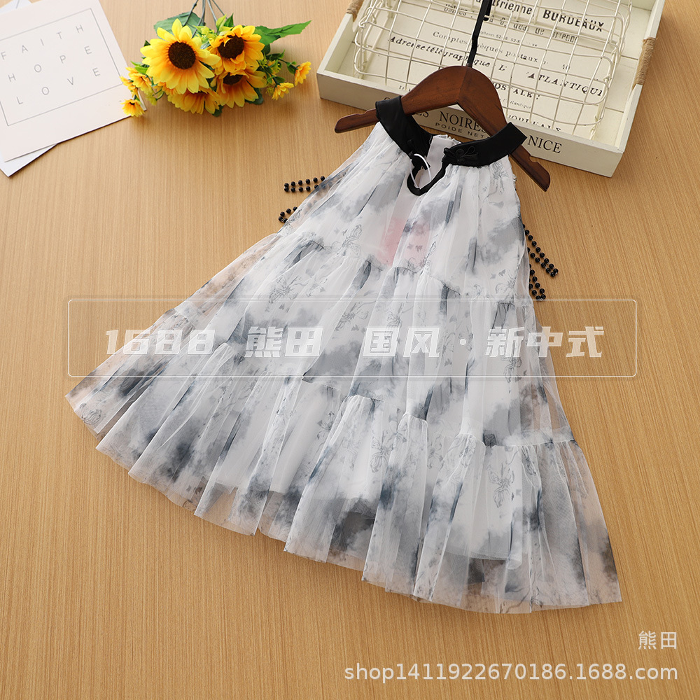 女の子のアンティークドレスサマードレス 2025 新しいスタイル子供のメッシュプリンセスベストドレス女の子中国風