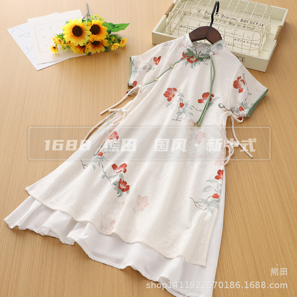 女性の子供の新しい中国式のチャイナドレスの国風はチャイナドレスのロングスカートの女性の夏の新型のレトロな気質のプリントのワンピースを改良します。
